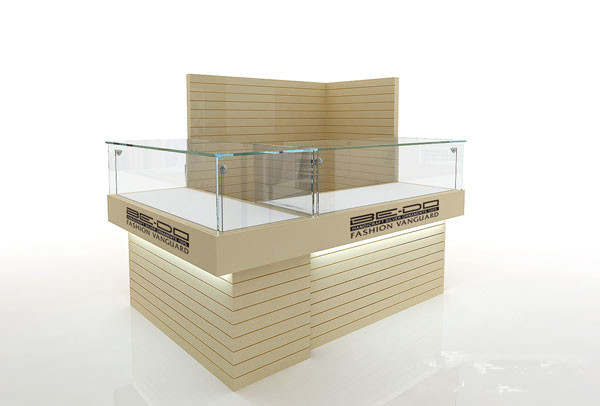 伊勢丹的這款品牌珠寶展柜設計是由廣州市白云區瑞雅展柜廠設計的,米色亞光烤漆的柜體造型新穎時尚,玻璃面的柜體下部是實木結構,并在中間過渡上加入品牌標識,下部采用凹槽線條來突出視覺的藝術美感。